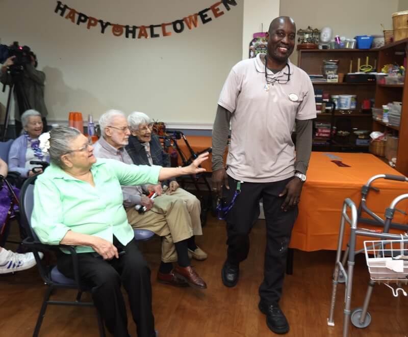 Students from the famed Berklee College of Music make regular on-site appearances at Susan Bailis. Here, their rendition of “When the Saints Go Marching In” get residents’ toes tappin’ and hands clappin’.
